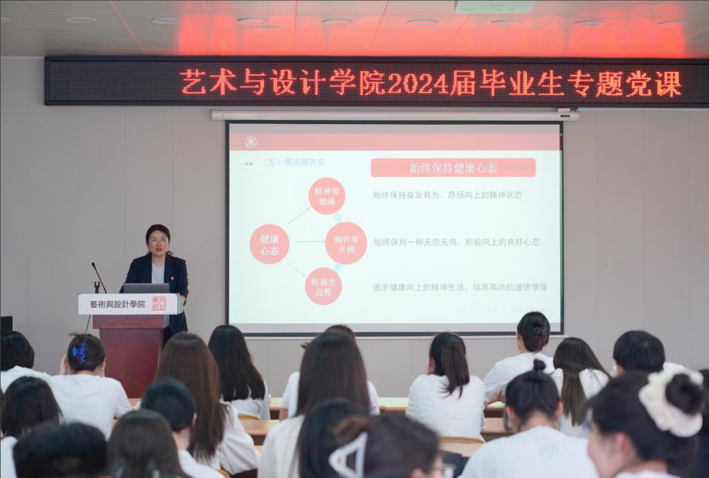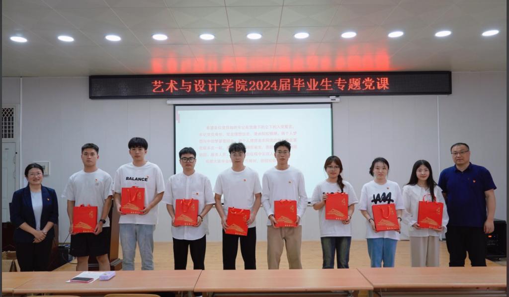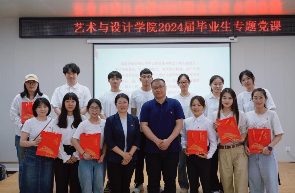 6月13日下午,艺术与设计学院开展2024届毕业生党员离校前“最后一堂党课”暨廉洁教育主题活动,学院党委书记吕楠,学院党委纪检委员、副院长丁南,2024届毕业生党员参加活动。