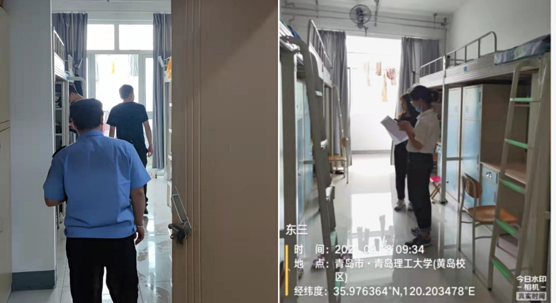 此次检查按校区、住宿区分四个小组进行,各小组由学生工作处、创新创业学院、团委负责人带队。各小组在检查前召开现场会议,对此次检查提出了要求,主要有:提高思想认识,增强防范意识;深入学生,强化教育引导;抓好常态化疫情防控,检查落实各项健康管理措施;明确责任分工与检查重点,确保检查全覆盖。