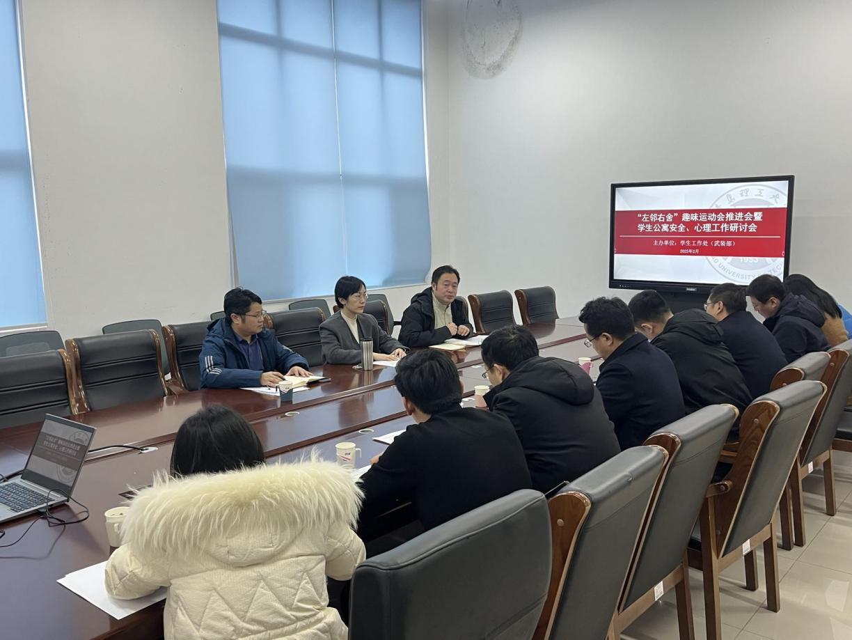 涂苏龙汇报了2025年度“一站式”学生社区重点工作,并就学生社区“左邻右舍”趣味运动会实施方案做详细解读。涂苏龙指出,高校学生社区是开展学生思想政治教育的重要阵地,是培养学生德智体美劳全面发展的第二课堂,各学院要持续加强“一站式”学生社区建设,将学生社区打造成积极健康、文明向上、富有内涵、富有特色的育人阵地。学生工作处将持续开展各类学生社区文体活动,丰富学生业余生活,营造良好的成长环境。