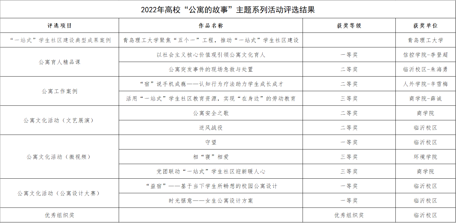 近日,山东省教育厅公布了2022年高校“公寓的故事”主题系列活动评选结果,我校报送的作品获各类奖项13项,获奖项目获历史性突破,临沂校区获优秀组织奖。其中,信控学院作品《以社会主义核心价值观引领公寓文化育人》获公寓育人精品课一等奖、临沂校区作品《守望》获公寓文化活动(微视频)一等奖。