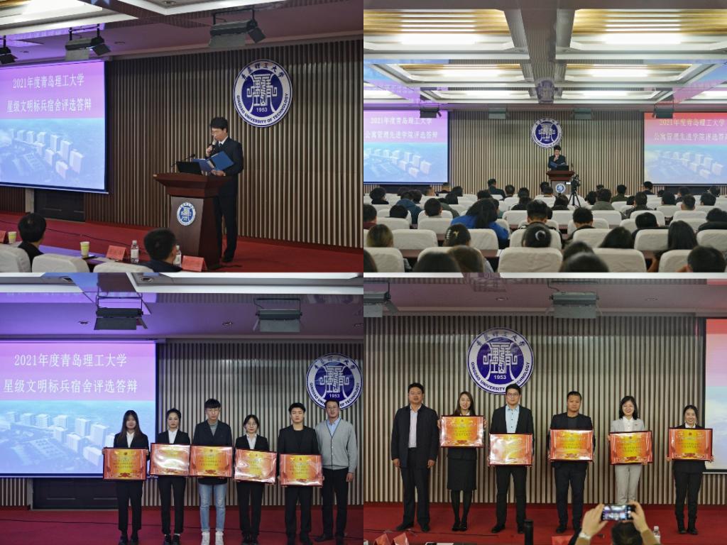 为深入学习贯彻习近平总书记在庆祝中国共产党成立 100 周年大会上的重要讲话精神和习近平总书记在全国高校思想政治工作会议上的讲话精神,充分贯彻落实习近平总书记坚决打赢疫情防控阻击战的指示精神,不断加强学生公寓防疫常态化建设,进一步做好我校公寓学生思想政治工作和文化建设工作,提高我校公寓管理服务的整体工作水平,学校于2021年12月8日、12月9日在西海岸新区主校区教学楼西报告厅成功举办2021年度77779193永利集团星级文明标兵宿舍评选答辩和2021年度77779193永利集团公寓管理先进学院评选答辩。