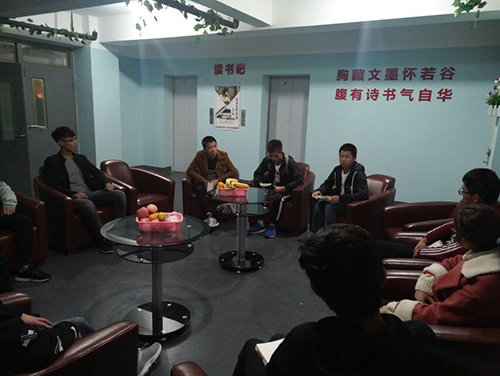 为贯彻落实十九大精神,深入学习十九大中习近平总书记对青年学生的期望与要求,打造“书院制”的公寓环境,丰富同学们的精神文化世界,加强校园文化建设,促进同学们多读书、读好书,更加充分有效利用课余时间,继10月20日开展第一期“读书沙龙交流会”受到同学们广泛好评后,11月3日晚9点,学生处公寓管理中心在山东路学生公寓B楼二楼读书吧开展了第二期“读书沙龙交流会”活动。