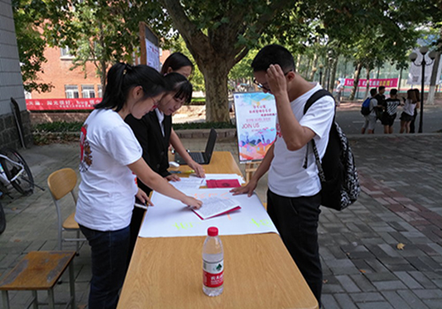 当天上午7点,自管会成员便到指定地点布置纳新场地,桌椅、海报、报名表全部准备齐全。在新生询问过程中,大家积极回答,详细地为新生解疑答惑,为纳新活动尽一份力。