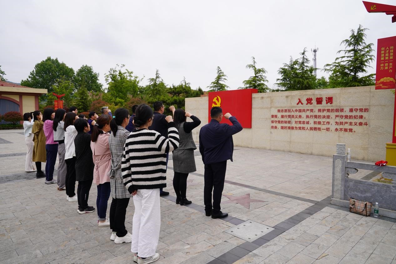 最后,支部成员齐聚杨家山里抗日战争纪念展厅门前广场,面向党旗重温入党誓词,再次体会作为共产党员的责任感和使命感。