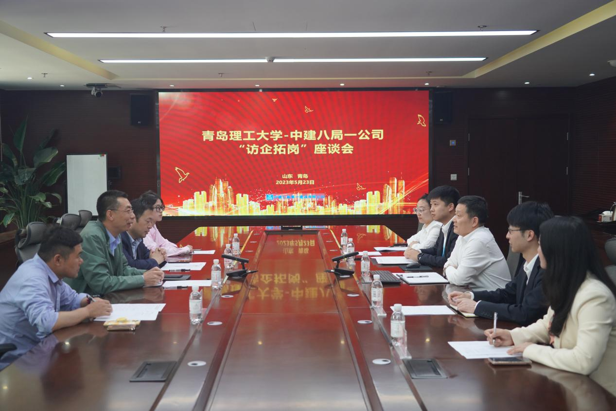 为进一步促进校企之间合作共赢,对接产学研用需求,汇聚创新资源、增强人才培养适配度,5月23日,学生工作处副处长、就业指导中心主任牟永川,土木工程学院党委副书记、副院长邵先锋,管理工程学院党委副书记、副院长王中帅及就业指导中心工作人员赴中建八局第一建设有限公司青岛公司开展校企合作洽谈。中建八局第一建设有限公司青岛公司党委副书记、纪委书记谢迎泽及综合办公室主任修天翔等各部门领导及校友代表参加座谈。