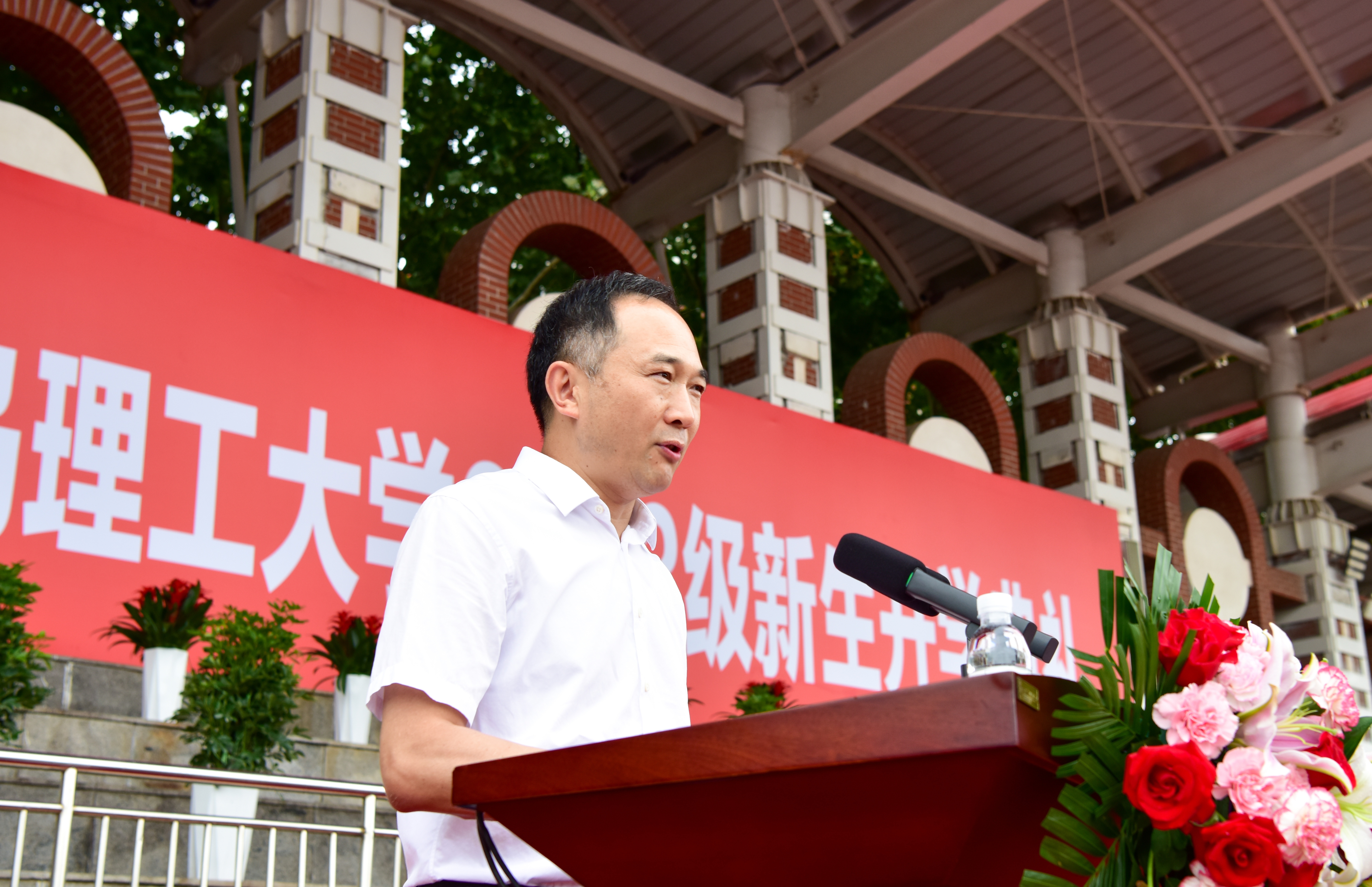 殷殷嘱托催奋进,不负期望谱新篇。党委常委、组织部部长郭建锋作军训总结讲话。他代表学校向付出辛勤劳动的教官们表示了由衷的敬意,向参与本次军训的老师及后勤保障的同志们表示了衷心的感谢,向圆满完成军训任务的同学们表示热烈的祝贺!他对同学们提出三点希望:一是要树立“愿得此身长报国”的志气,做有理想、有追求的理工学子;二是锻造“千磨万击还坚劲”的骨气,做有品质、有修养的理工学子;三是增强“敢教日月换新天”的底气,做有担当、有作为的理工学子。