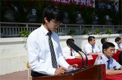 在校生代表土木工程学院土木工程专业2012级7班朱春阳、通信与电子工程学院通信工程专业2013级2班于?在典礼上发言,分享了自己在大学校园的点滴收获与心得体会。