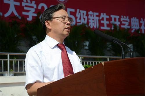 薛允洲用“中流行舟,一篙不可放缓;滴水穿石,一滴不可懈怠”勉励大家,要用实际行动为自己代言。他在讲话中对新生同学提出了四点要求和希望:一是坚守理想信念,重视道德养成。希望同学们在校期间自觉立德修身,坚守社会主义核心价值观,坚守做人处世的根本之道,追求止于至善的卓越境界;要自觉砥砺品格,加强道德修养,既要树立报效祖国、服务人民的公德、大德,又要修好慎独慎微、知止知守的私德、小德,不因恶小而为之,勿以善小而不为。二是厚实知识积累,勤于探索创新。希望同学们珍惜大学宝贵时光,勤于学习、敏于求知、善于探索。特别是本专科学生,要积极适应从中学到大学的学习过渡,适应即将全面启动的学分制改革,不断提高自主学习能力。要更加注重独立思考,加强思维训练,活学活用其思想和方法,敢于提出创新性的设想和批判性的见解,从而站在前人肩膀上别开一番新天地。三是培养求实作风,注重实践训练。希望同学们在日常的学习、生活中,要培养科学严谨、求真务实的作风,做到诚信做人、踏实做事、不羡虚荣、不慕虚名,不断调整自我,尽快融入到集体之中。在学习中积极主动的融入实践,经受锻炼,培养创新能力,丰富大学生活。四是增强人生定力,保持从容心态。要学会正确看待自己。既要有敢于较量、一搏高下的勇气,又要有见贤思齐、虚心好学的雅量和气度,要学会冷静处事,切忌心浮气躁,坦然对待成败得失,善于调节心理情绪,始终保持积极乐观的心态,以勇气、智慧和毅力,迎接大学生活面临的挑战。