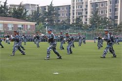 分列式后,军训方队进行了队列队形变换、刺杀操、警棍盾牌术军体拳、匕首操等汇报表演,他们充满豪迈自信和磅礴气势的演出赢得在场师生和官兵的热烈掌声。