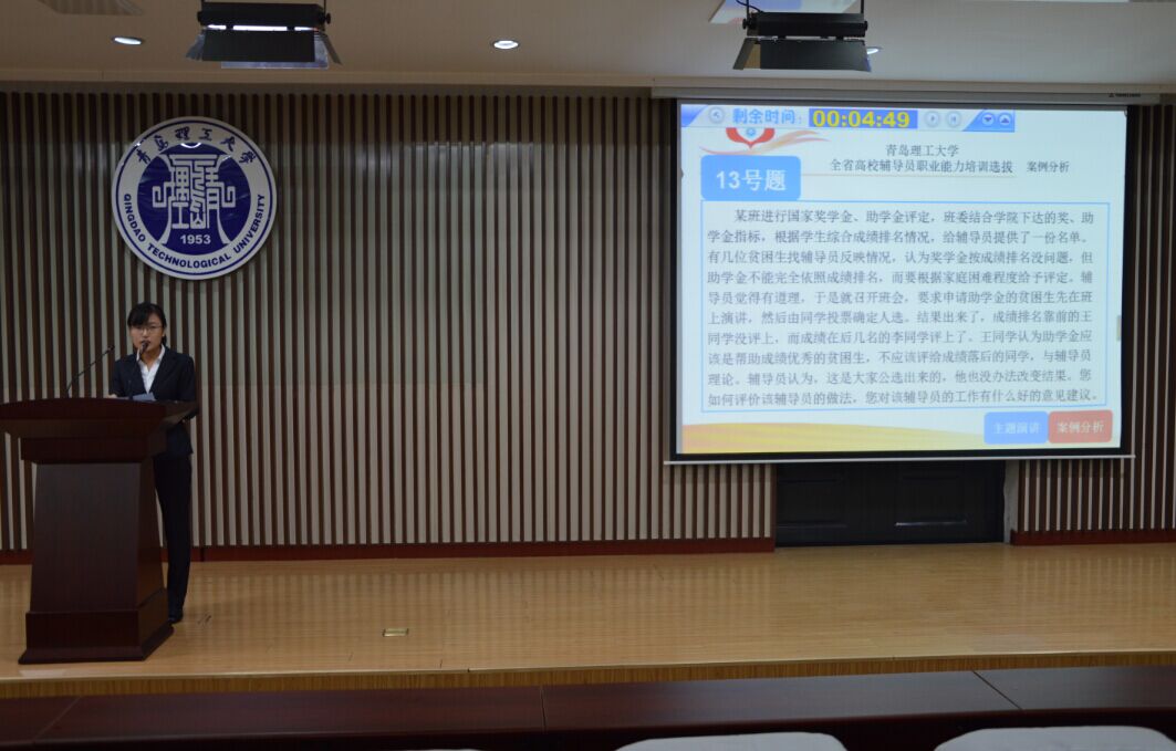 11月5日,学校在嘉陵江路校区山东省辅导员职业能力大赛预选赛。学生处、团委部门负责人及各学院党总支副书记担任评委,全体学生工作干部观摩了比赛。