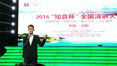 日前,以“相逢是缘、相知为友、高山流水、立志铸梦”为主题的2016年“知音杯”全国演讲大赛总决赛在汉阳举行。我校土木工程专业潘昱坤同学经青岛市演讲协会推荐,代表青岛市出赛经过初赛、复赛、决赛的角逐,最终获得全国二等奖的喜人成绩。