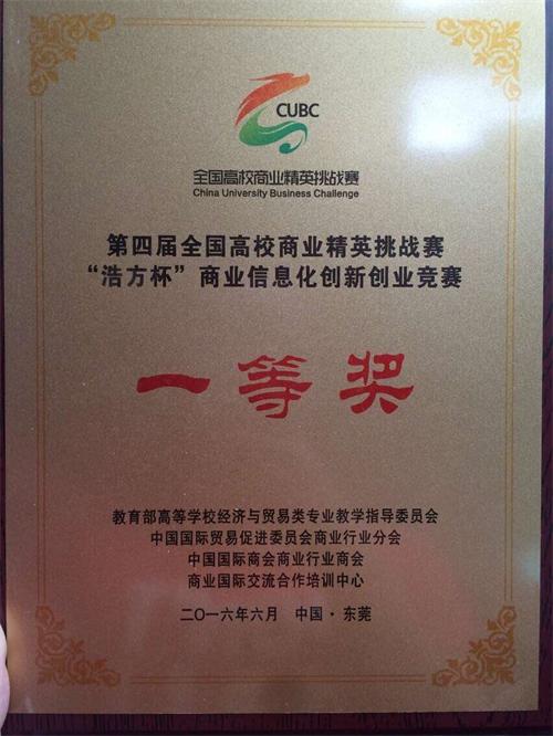近日,第四届全国高校商业精英挑战赛“浩方杯”商业信息化创新创业竞赛全国决赛在广东东莞举行。我校商学院14级学生李英梅等组成的团队,荣获全国总决赛一等奖。指导教师刘占军和姜永波被评为优秀指导教师。