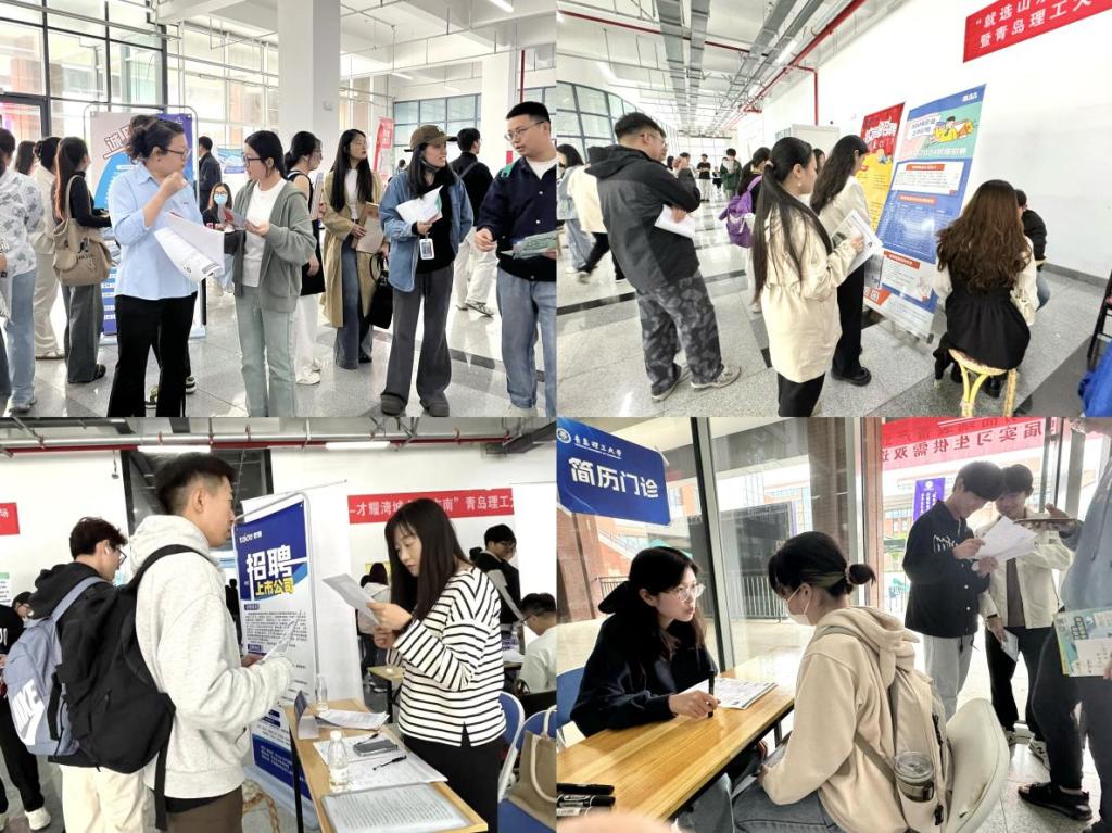 双选会现场人潮涌动,气氛热烈。学生积极主动与用人单位沟通交流,详细了解企业发展、岗位职责等信息,结合自身优势和意向精准投递简历。用人单位热情回应学生关切的问题,详细解读人才晋升通道、实习就业薪资等。现场设置就业赋能加油站,市南区人社局工作人员入校宣讲人才政策,就业指导中心工作人员现场为毕业生简历“把脉问诊”,为在校生开启求职之路把舵护航。