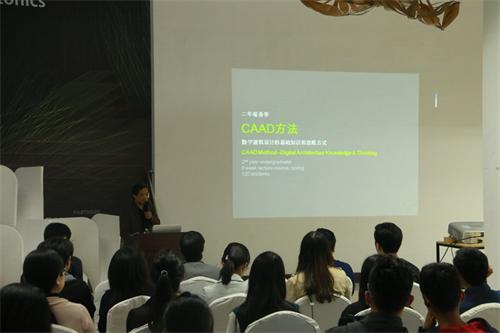 讲座之前,徐卫国教授参观了建筑学院获奖作品展、数字建构工作营成果展,并与我校建筑学院院长郝赤彪、副院长许从宝以及学院相关老师进行了建筑学专业数字建构教学的探讨。
