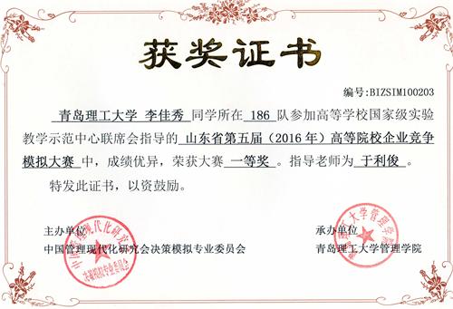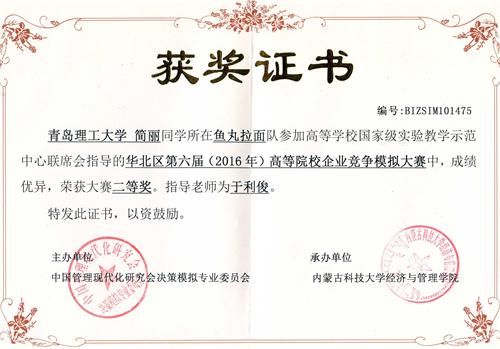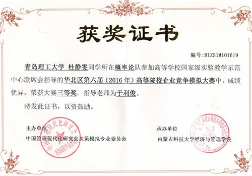 近日,第六届华北区及第五届山东省企业竞争模拟大赛相继落下帷幕,我校管理学院在这两项赛事取得优异成绩:在第六届华北区企业竞争模拟大赛中获二等奖、三等奖各1项;在第五届山东省企业竞争模拟大赛中获一等奖2项、二等奖3项,指导老师为管理学院团总支书记于利俊。