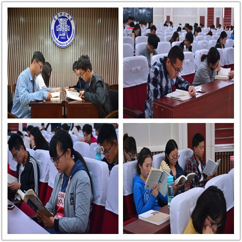 在持续6小时的活动中,嘉陵江路校区报告厅成为一片阅读海洋。同学们放下手机和手头的琐事,专注于图书的世界,完成了一次公共空间的私人阅读,完成了一次喧嚣时光的心灵沉浸。活动共分为四个部分。