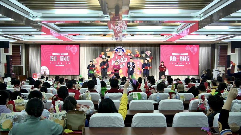 此次培训以“铸魂展艺耀青春 团结奋进建新功”2025年学工系统迎新春联欢会拉上序幕。联欢会上,辅导员们把育人工作经历、心得感悟融入节目表演,内容丰富、形式多样、精彩纷呈。新入职辅导员的开场舞《青理新阳光》点燃全场气氛,联欢会正式开始。舞蹈《青理新阳光》《欢喜学工人》《相亲相爱》、朗诵《我爱上班》、合唱《成长的乐章》《我们的青春》等节目,展示了辅导员甘为人梯、默默奉献的育人情怀,引起了大家的共鸣,赢得阵阵掌声。期间,“学工连连看”“我爱记歌词”“蒙眼踏步走”等游戏互动环节也让大家从繁忙的工作中解放出来,在欢声笑语中体验团队协作的快乐。联欢会最终以学生工作处、团委带来的朗诵《我们一路同行》落下帷幕。