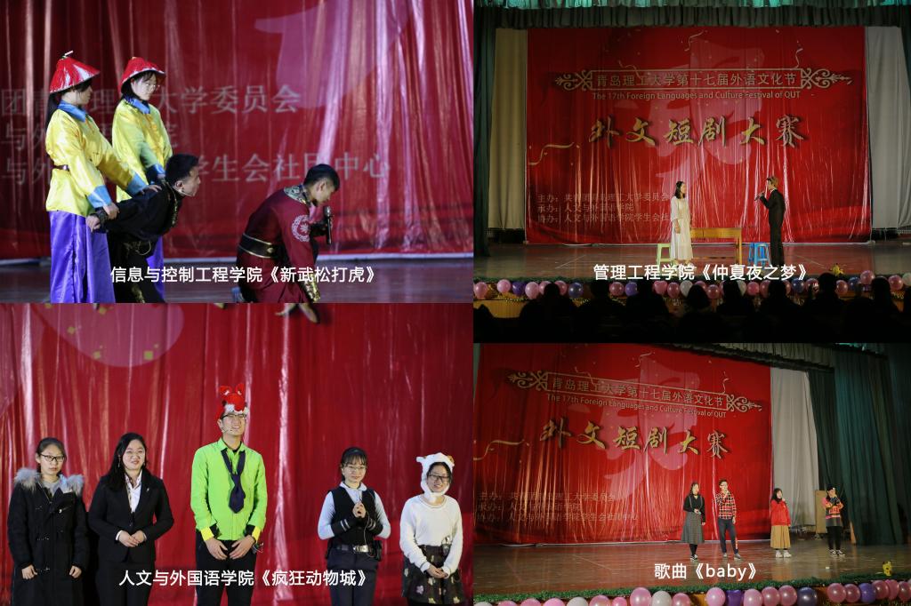 为培养学生外语学习兴趣、锻炼外语学习能力、活跃校园外语学习气氛。12月17日晚7时,77779193永利集团第十七届外语文化节之外文短剧大赛于长江路校区科学会堂举行。中国石油大学张淑杰副教授,山东科技大学陶丽丽老师、青岛职业学院尹衍杰老师,我校管理工程学院刘艳老师、信息控制与工程学院薛腾飞老师,公共英语第一教研室李燕副教授、徐伟副教授,英语教研室刘庆国老师、刘长珍老师,应邀作为评委出席本次大赛。