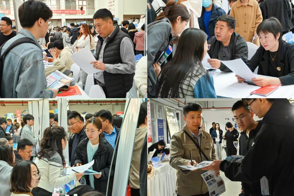 百企万岗聚势,青春扬帆启航。作为学校近年来规模最大的春季招聘活动,本次双选会紧扣区域经济发展需求,聚焦装备制造、材料能源、土木建筑、信息技术等多产业领域,汇聚近400家优质企业,提供就业岗位一万余个。其中既有豪迈集团股份有限公司、雷沃重工集团有限公司、京东方科技集团股份有限公司等行业龙头,也有海信视像科技股份有限公司、威高集团有限公司、泰山集团股份有限公司等区域标杆企业,更有淄博、威海、日照、东营,青岛市崂山、城阳、市南、即墨、平度9地人社组织的“城市引才团”助阵,形成“国企领军、民企创新、地方聚力”的多维招聘矩阵。吸引校内外5000多名毕业生及低年级学生参与。为突破时空限制,双选会采用“线下双选+云端投递+直播带岗”三线联动模式,直播带岗参与人次30416。
