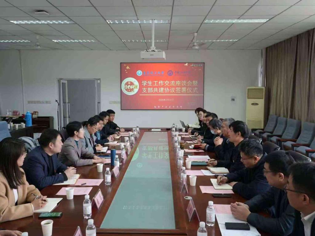 支部共建聚合力,党建引领谱新篇。业务交流结束后,双方党支部开展了党建业务交流并举行共建签约仪式。根据协议,两校学工党支部将以“资源共享、优势互补、协同发展”为目标,通过联合开展主题党日活动、集体学习等形式,推动党建与业务深度融合,构建常态化交流合作机制。双方表示,将以支部共建为契机,进一步强化党建引领作用,凝聚育人合力,共同提升学生思想政治工作的针对性和实效性。