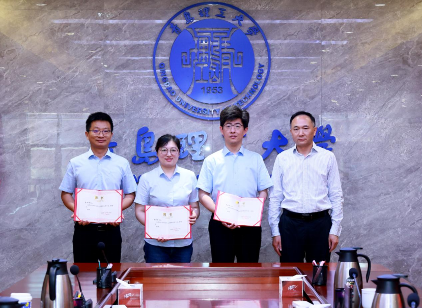 高洁、周晶共同签署医校合作协议以及学生工作处党支部与青岛市社会心理健康公共服务中心党支部(筹)共建协议。郭建锋为学校特聘心理专家颁发聘书。