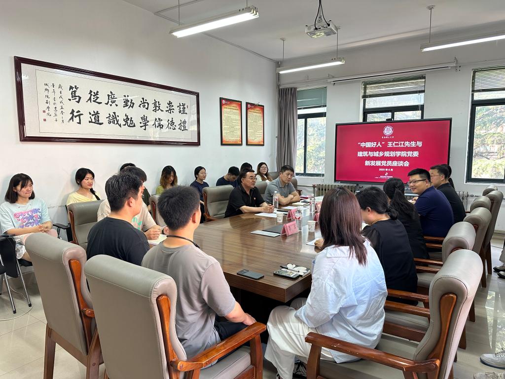 6月30日,建筑与城乡规划学院党委在建筑馆301举办“赓续红色基因·践行奋斗报国”新发展党员座谈会。“中国好人”、山东省道德模范、学院校外兼职辅导员王仁江同志与2025年新发展党员围坐一堂,畅谈初心使命,为新党员扣好政治生涯“第一粒扣子”,座谈会由学院党委书记吕楠主持。