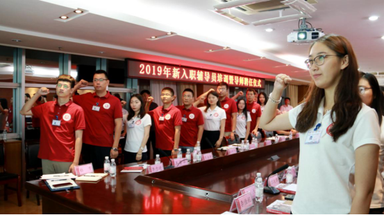 会议最后,在学校领导和辅导员导师的见证下,全体2019年新入职辅导员进行了庄严的宣誓仪式。