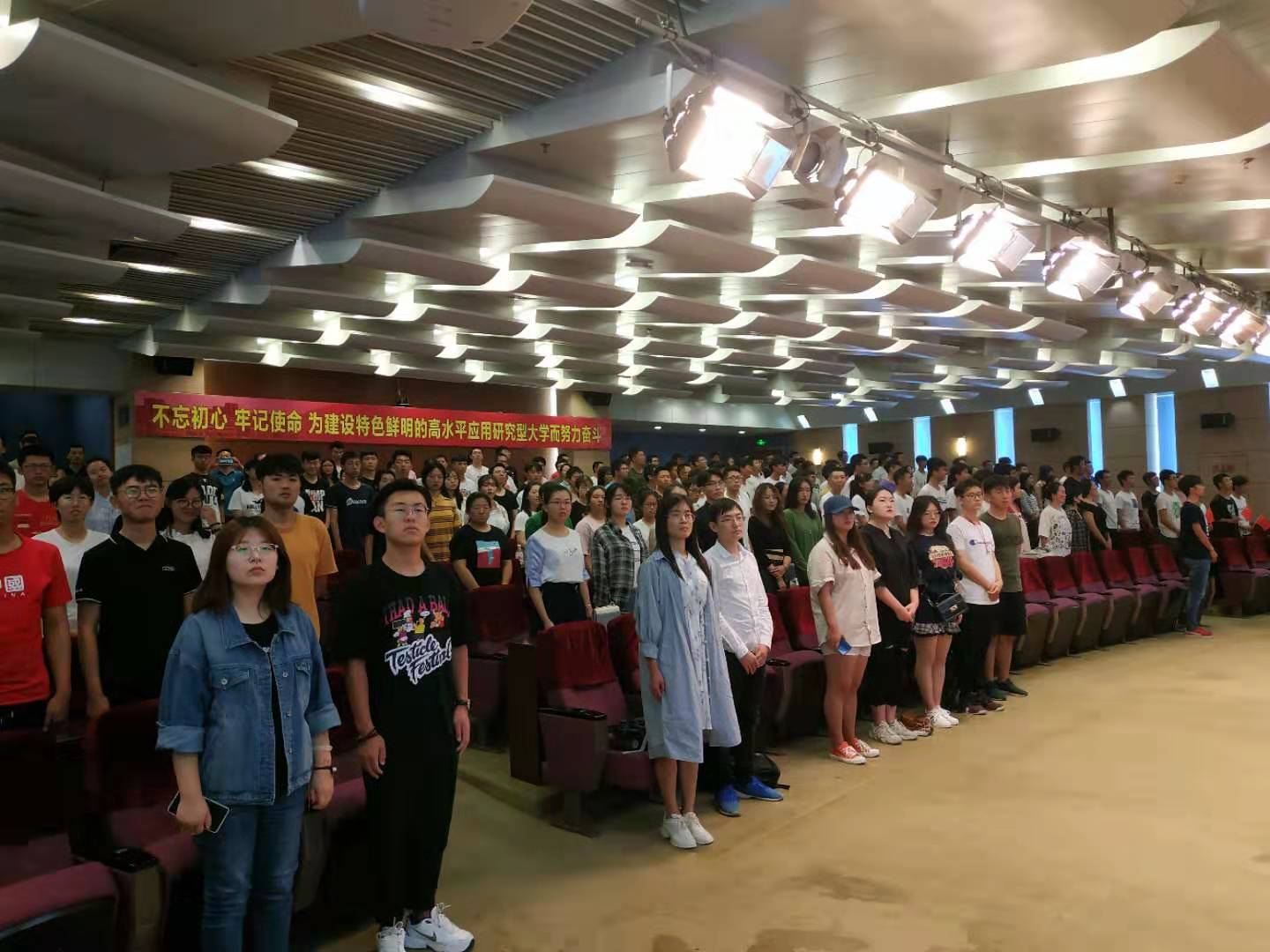 习近平总书记在庆祝中华人民共和国成立70周年大会上的讲话强调,“全党全军全国各族人民要更加紧密地团结起来,不忘初心、牢记使命,继续把我们的人民共和国巩固好、发展好,继续为实现‘两个一百年’奋斗目标、实现中华民族伟大复兴的中国梦而努力奋斗!”临沂校区党委常务副书记李国涛表示,立德树人是高校的根本任务、光荣使命、神圣责任,我们坚决贯彻习近平总书记的讲话精神,必须全面贯彻党的教育方针,坚持社会主义办学方向,坚持为党育人的初心,站稳为国育才的立场,紧紧围绕实现“两个一百年”奋斗目标、实现中华民族伟大复兴的中国梦,源源不断培养大批“树立远大理想”“热爱伟大祖国”“担当时代责任”“勇于砥砺奋斗”“练就过硬本领”“锤炼品德修为”的优秀人才,为党、为国家、为人民服务。临沂校区必须不忘初心、牢记使命,始终如一秉承“扎根革命老区,办沂蒙人民满意大学”的光荣使命,认真贯彻学校第三次党代会精神,狠抓规范管理,强化内涵建设,不断提升办学水平,以优异成绩向新中国70华诞献礼!