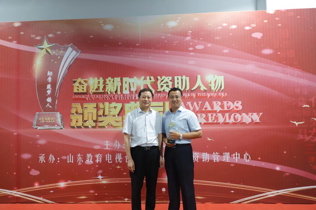 9月29日下午,“春风化雨七十载 资助奋进新时代”资助人物颁奖典礼在山东教育电视台演播大厅举行。山东省副省长于杰,省政府副秘书长辛树人,省教育厅厅长邓云锋出席颁奖典礼。“奋进新时代资助人物”共70人,其中“筑梦大使”优秀资助工作者35人。我校学生处学生资助管理中心主任董虎老师当选“筑梦大使”优秀资助工作者。
