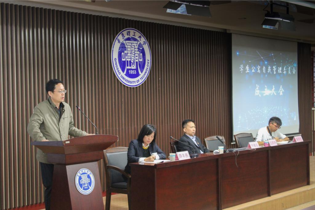 为进一步强化文明宿舍的创建工作,发挥学生组织在公寓管理中的桥梁作用,10月9日,我校新一届学生公寓自我管理委员会成立大会在嘉陵江路校区一楼东报告厅举行。学生工作处副处长申维东、学生公寓管理中心主任王庆华、中铁诺德物业经理薛丰燕及学生公寓自管会全体成员参加,会议由王庆华主持。