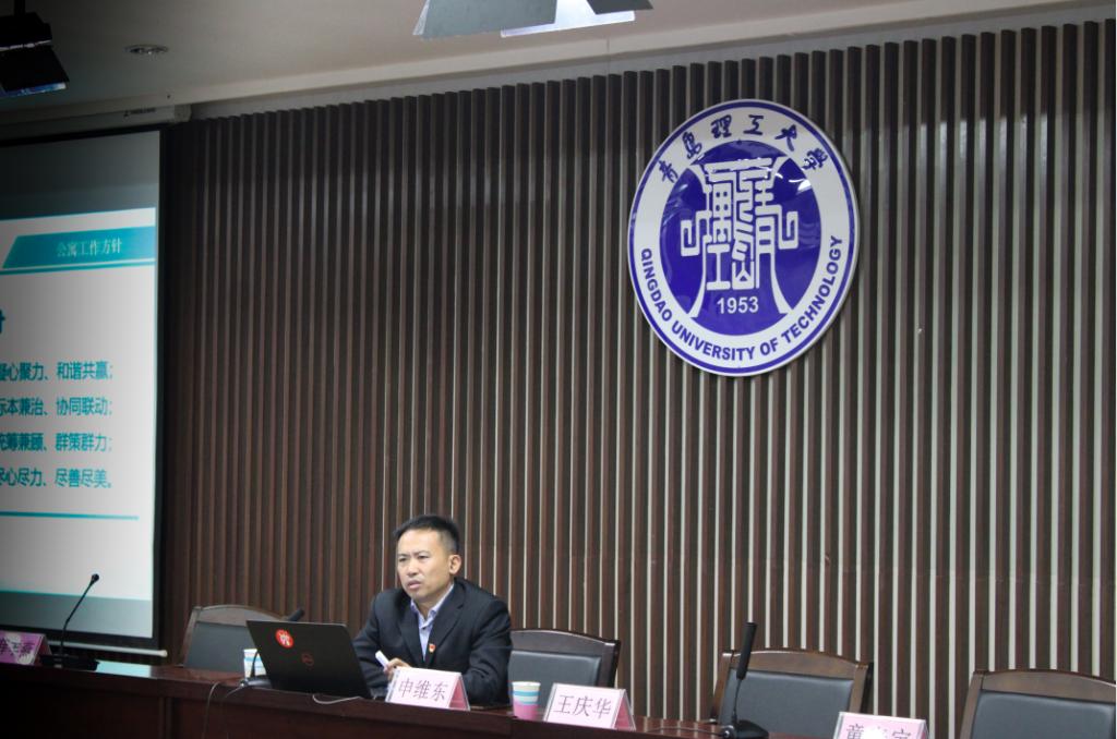 会议中,申维东利用课件向与会人员重点讲述了“六JING一警”公寓文化发展理念。他指出,学校第三次党代会明确提出了“十大工程”,其中,“幸福理工”建设工程指出要持续开展洁净校园、洁净宿舍行动,提升校园文化建设水平,这为全校师生指明了奋斗目标和前进方向。他认为,宿舍文化作为校园文化建设的重要组成部分,是开展学生思想政治教育工作的重要阵地,是文化育人的第二课堂,是高等学校做好精神文明建设和管理工作的重要窗口。