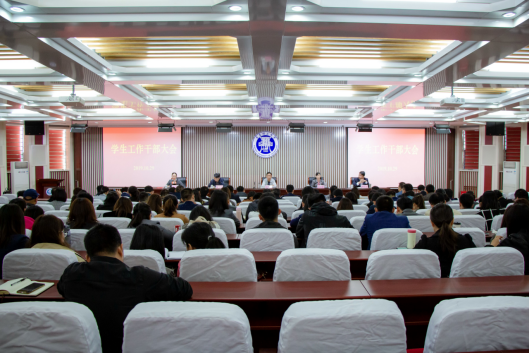 学生处处长焦红良对学生工作进行了部署,他指出,新时代赋予了学生工作新的目标和要求,要紧紧围绕立德树人根本任务,进一步健全学校“一个中心六个平台”的学生工作体系。要以学生成长成才为中心,不断提升学生教育管理质量,组织开展好理工正能量、学风建设月、筑梦铸魂工程、心理社团文化节、创新创业文化节等活动,抓好班主任、辅导员、学生骨干三支队伍建设,加强创新创业学院建设,完善就业指导服务,促进学生全面协调持续发展。