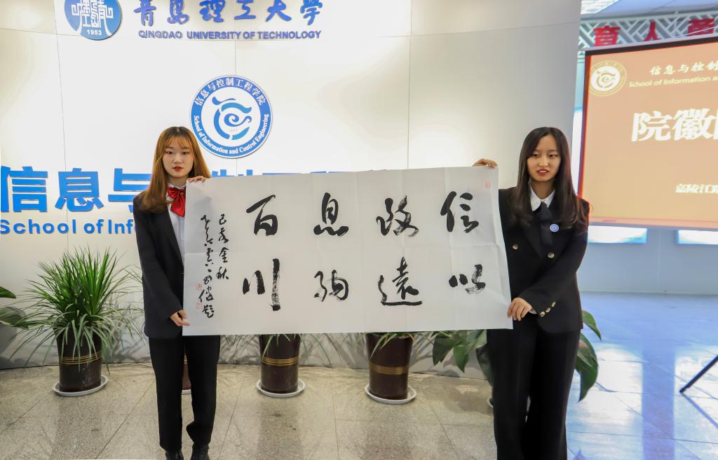 学院领导老师还为学生代表现场佩戴了院徽,鼓励学生勤奋学习,争做合格的社会主义建设者和接班人。发布会还展示部分专家、教师等题写的院训书法作品,一幅幅亲手书写的院训作品,表达了学校及学院领导老师们对信息与控制工程学院深切祝福。