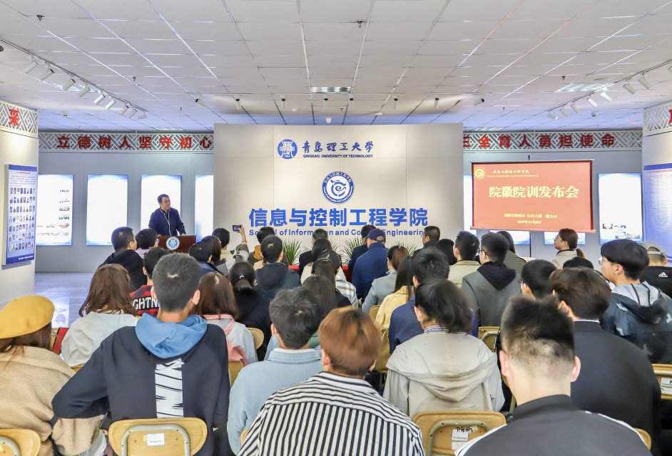 为贯彻落实学校第三次党代会确定的十大工程中“实施大学文化培育工程”的要求,充分展示学院的办学理念、特色、文化和精神内涵,进一步增强学院师生的归属感、认同感和集体荣誉感,信息与控制工程学院于11月8日下午在信控大楼一层大厅举行院徽院训启用发布会。学院党总支书记董典同、院长周玉国、党总支副书记曲良波、副院长宋传旺、艺术与设计学院老师王晖、学院各教研室教师代表、全体学工干部以及学生代表等参加发布会。会议由曲良波主持。