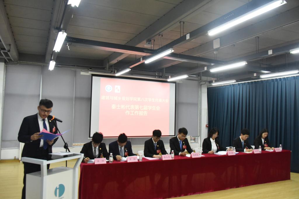 会上,秦士彬同学代表第七届学生会向大会作了题为《不忘初心、牢记使命 锐意创新 勇争朝夕 谱写建筑与城乡规划学院学生会工作新篇章》的工作报告,随后,与会代表认真听取并在充分讨论交流的基础上,审议通过了第七届学生会的工作报告。此外,大会经过紧张严密的议程,选举产生了第八届学生会主席团成员,通过了关于大会工作报告的决议以及第八次学生代表大会常任代表名单,并向学院广大青年同学发出了《致全院青年学生倡议书》。