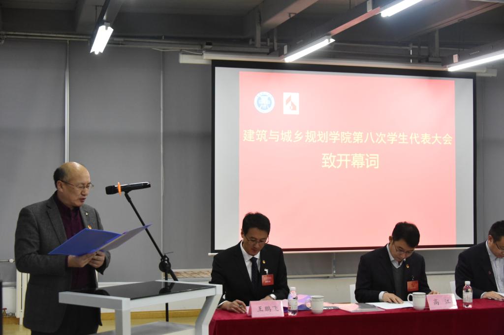 大会在庄严的国歌声中开幕,副院长刘福智致开幕词,对学院第八次学生代表大会的召开表示热烈祝贺、对学生会给予了美好祝愿、并对与会代表提出了会议要求。校学生会代表杨易鹏同学向大会致辞,肯定了学院学生会之前的系列工作,同时希望建筑与城乡规划学院第八届学生会能够继续发扬优良传统,与校学生会和其他各兄弟学院学生会保持密切联系,互帮、互助,共同为学校建设添砖加瓦。