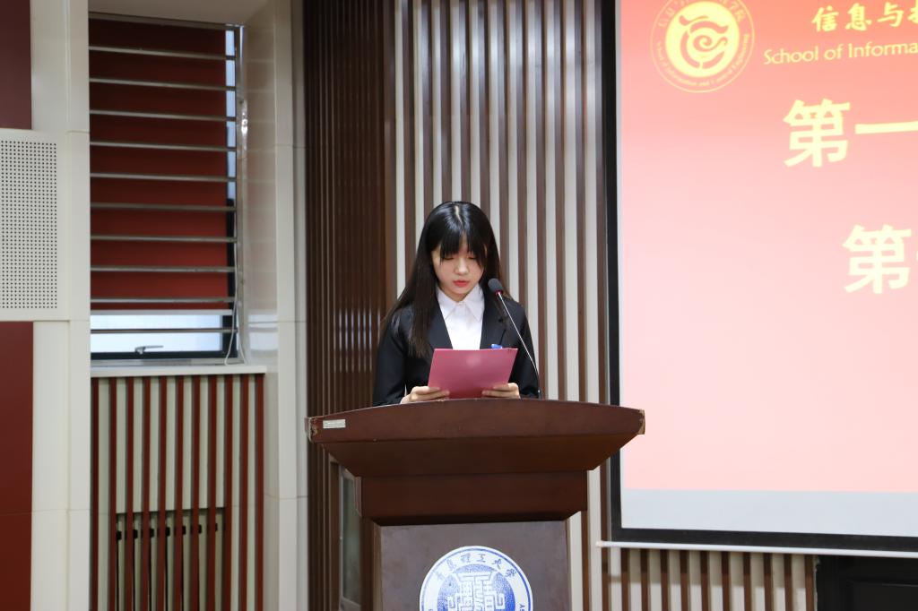 学校学生会副主席孙江涵代表校学生会向大会致辞。孙江涵对在过去两年的时间里,信息与控制工程学院学生会紧密围绕我校工作中心的方针以及全心全意为同学服务的工作态度表示肯定,同时她也希望学院在今后的学生会工作中,能够进一步加强校、院两级学生会的合作交流,互助互勉、精诚合作、共同进步,携手开创新时代学校学生会工作新局面,共同描绘属于信息与控制工程学院灿烂、崭新的美好明天!