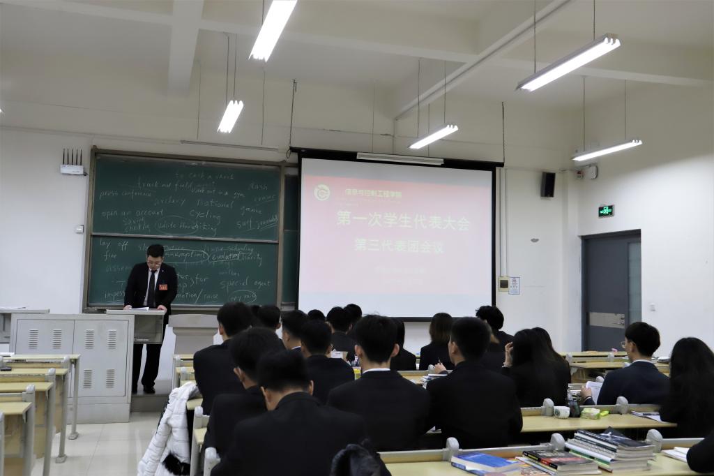信息与控制工程学院第一次学生代表大会是在深入贯彻习近平新时代中国特色社会主义思想的指导下,在学院全面落实学校第三次党代会精神、推进“十大工程”建设的关键时期下,在学院党总支的正确领导和分团委的指导下顺利召开的。大会在庄严嘹亮的国歌声中开始,曲良波致开幕词。他在充分肯定我院学生会前期工作的同时,明确指出了本次大会的主要任务:高举习近平新时代中国特色社会主义思想伟大旗帜,深入学习贯彻党的十九大精神和团的十八大精神,深入贯彻落实学校第三次党代会精神,系统总结我院自成立以来的学生会工作,选举产生第一届学生会主席团,科学探索和规划今后一段时期学生会的工作目标和任务,使命光荣、任务艰巨。最后鼓励各位代表高举伟大旗帜、坚守责任使命,发扬民主精神,履行好代表职责。