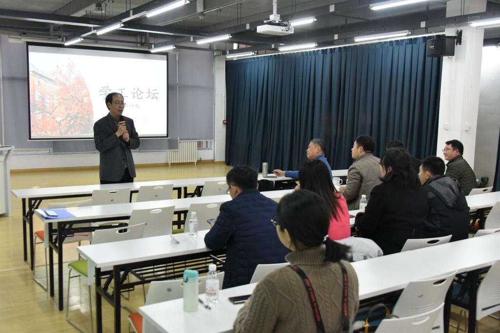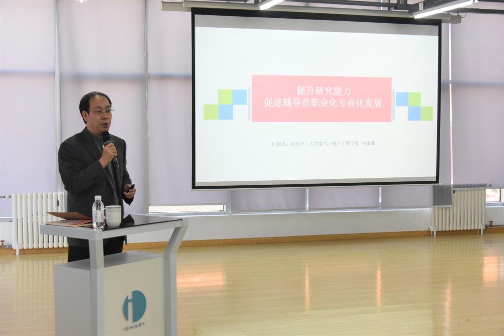11月28日下午,我校第十九期学工论坛在滨海人居环境学术创新中心7楼报告厅举办,山东高校辅导员名师工作室“刘东锋工作室”主持人、山东理工大学电气与电子工程学院党总支副书记刘东锋教授应邀做了题为《提升研究能力、促进辅导员专业化职业化发展》讲座。