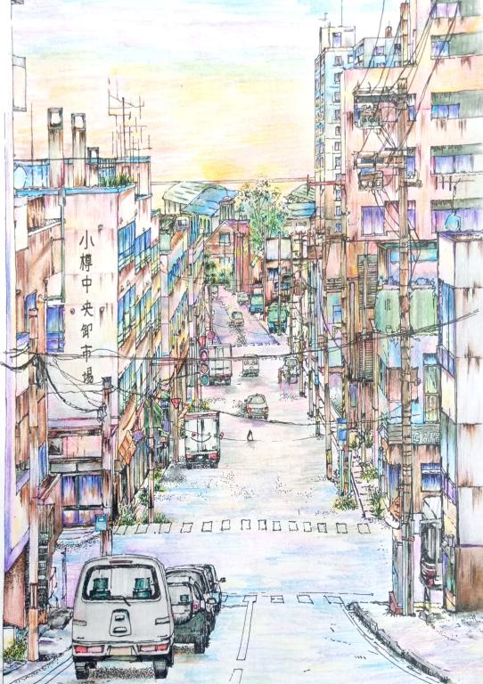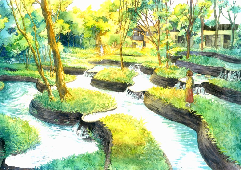 非艺术类速写优秀奖作品《江南》构建出了其作者本人记忆里的江南,通过墨线刻画出建筑肌理,水纹等,以不同粗细的黑色线条体现出画面的质感和明暗层次,线条的疏密组合构成画面的景深关系,其作品旨在以黑白画面打造江南水乡之美。非艺术类水彩优秀奖作品《水与绿的韵律——清井泽虹溪若雅跌水》描绘了轻井泽虹溪诺雅的梯田式溪流跌水景观,跌水与绿植交织,人身处其中与自然互动。画面使用较高饱和度和较多层次的色彩烘托,营造出富有生机、韵律和谐的美景。非艺术类手绘表现优秀奖作品《安静》描绘了黄昏时分,市场周围车水马龙,道路一边,两个人骑着自行车,慢慢行过,突出了世界美好,内心安静。
