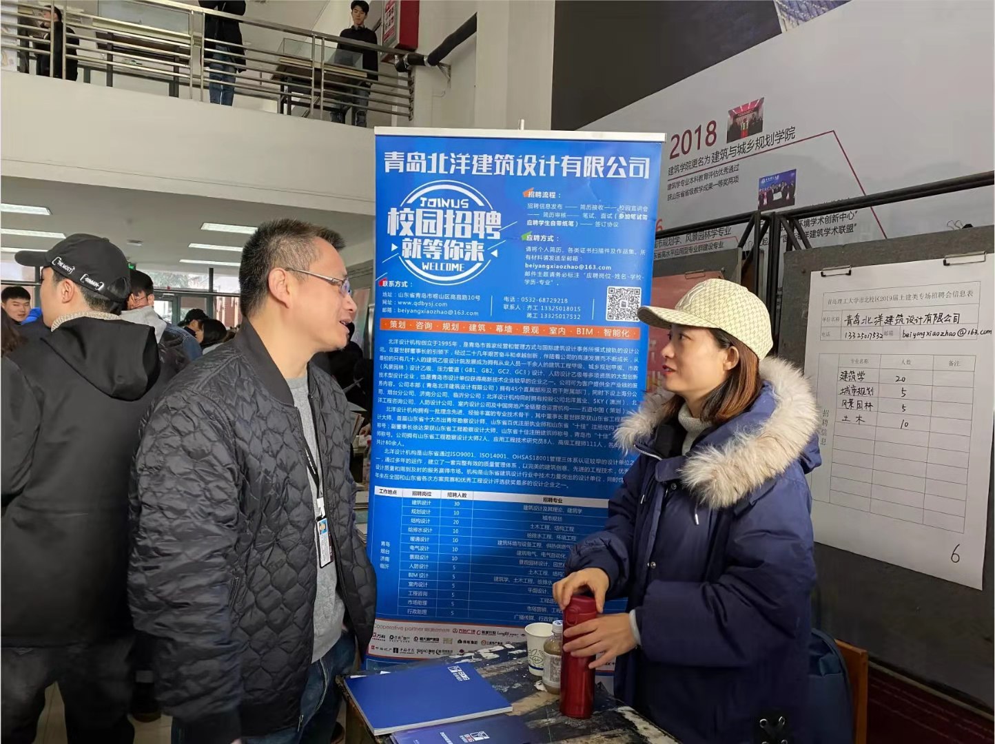 校友们各抒己见,他们作为“过来人”,对应届毕业生面对的许多问题更是有特殊感情。青岛义和钢结构有限公司的一位校友说:“我一直在持续关注着“学弟学妹们”的思想状态,希望在了解毕业生就业、帮助毕业生就业方面做更多服务”;成都基准方中建筑设计有限公司青岛分公司的校友则切实地提出一些建议,例如在大学阶段多开展工程技能培养和哲学美学课程,提供实习基地,并加强校企沟通,以便于更好了解毕业生的就业意向和诉求。更是有不少校友表示愿意提供资金与机会为母校毕业生搭建良好就业平台,也希望学生通过本次招聘会能使自己有一个从学校到企业的良好过渡。