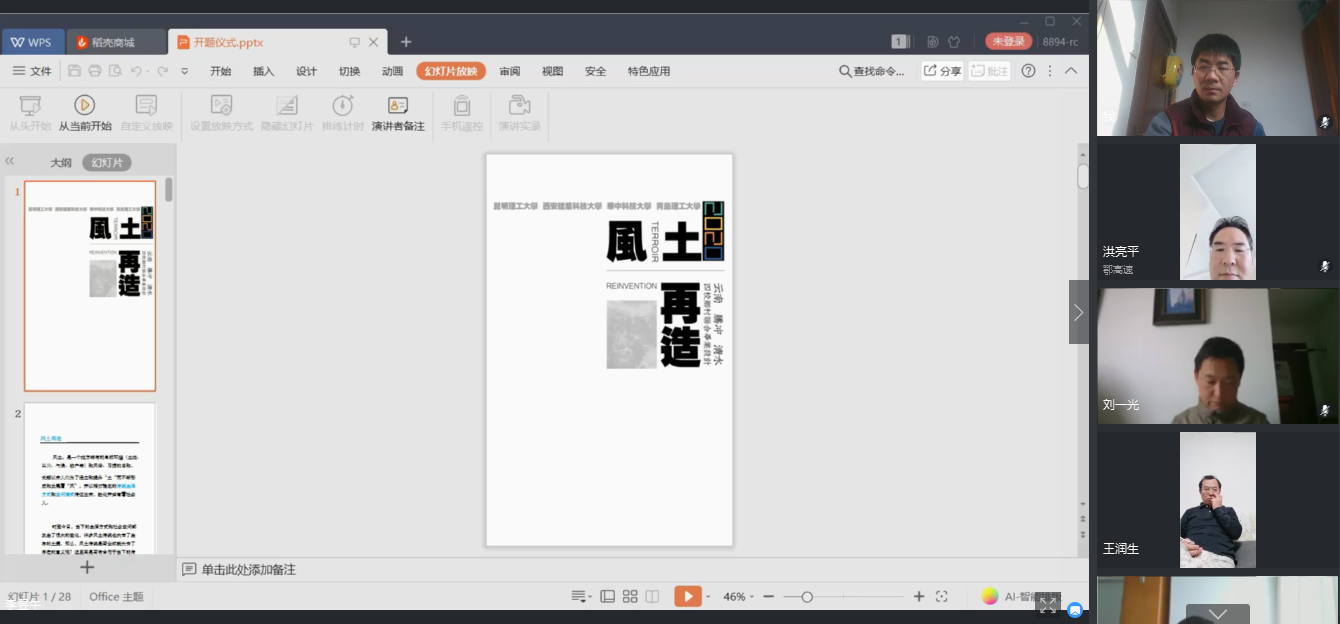 面对新冠肺炎疫情防控的严峻形势,为保质保量完成2020全国四校乡村联合毕业设计工作,2月25日、2月28日,华中科技大学建筑与城市规划学院、西安建筑科技大学建筑学院、昆明理工大学建筑与城市规划学院以及我校建筑与城乡规划学院参加联合毕业设计的师生云端相见,在线全体会议交流,毕业设计教学如期有序开展。
