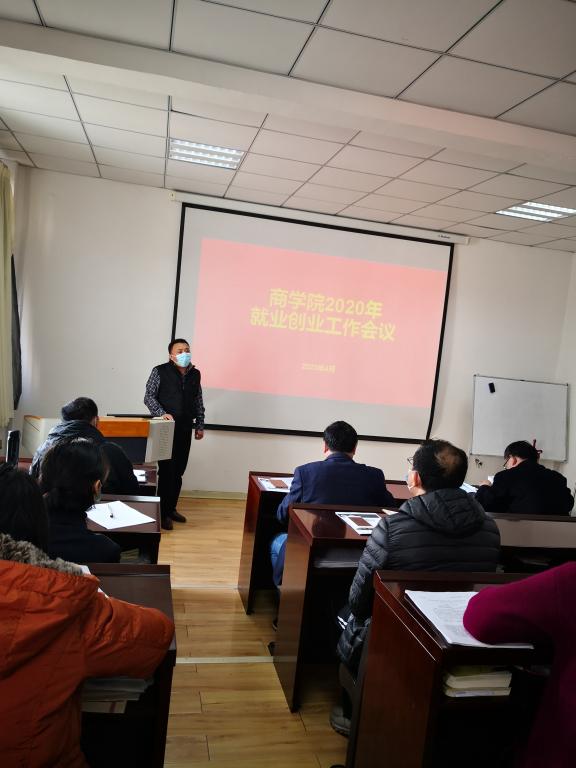 就业是民生之本。“稳就业”不仅是“六稳”之首也是基石。为切实做好毕业生就业工作,商学院于4月15日在长江路校区1号教学楼411会议室召开2020年就业创业工作会议。商学院院长王曙光等学院领导班子成员、各教研室主任、各科室负责人、毕业生辅导员参加了会议,党总支书记王粲主持会议。会议发布了《商学院2019届毕业生就业质量年度报告》