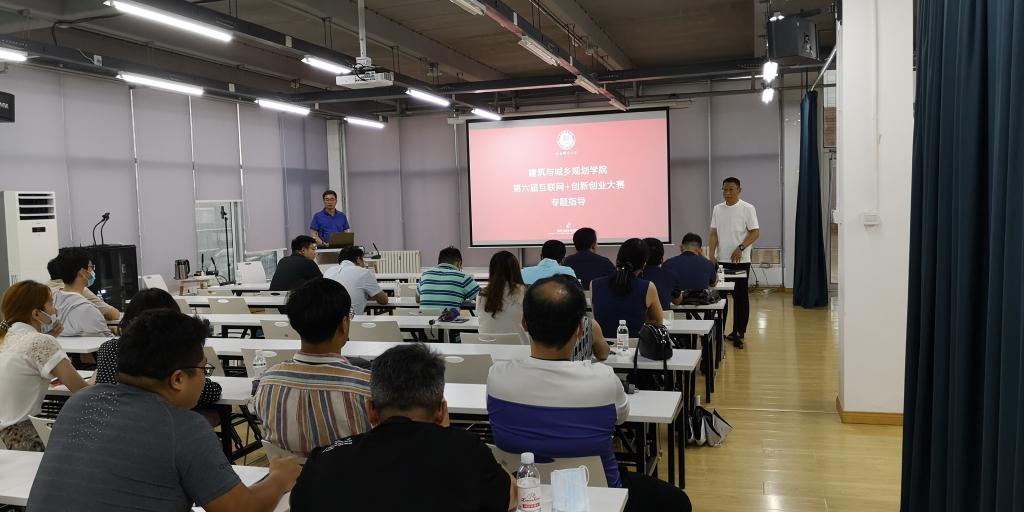 为更好开展第六届“互联网+”国际大学生创新创业大赛,全面提升创新创业教育水平,7月6日下午,建筑与城乡规划学院于滨海人居环境学术创新七楼开展大赛专题辅导点评,学院邀请学校创新创业学院常务副院长李忠晓教授现场进行辅导。建筑与城乡规划学院院长许从宝、副院长朱一荣、党总支副书记高江,建筑系主任王少飞、城乡规划系主任刘一光,各系分管本科教学、科研副主任,全体学生工作干部及40岁以下青年博士参加专题辅导。