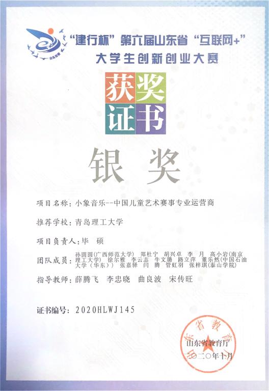 小象音乐起始于2015年12月,是国家高新技术企业、青岛市十大创客项目、山东省2019年重点文化产业入库项目。2020年我校创新创业学院、信息与控制工程学院专门组织专家团队对该项目持续进行打磨辅导,组织该先后参加了第六届中国国际“互联网+”大学生创新创业大赛和2020年“青蓝汇”创新创业大赛,均有收获。