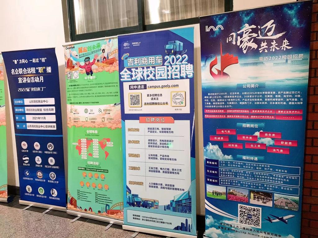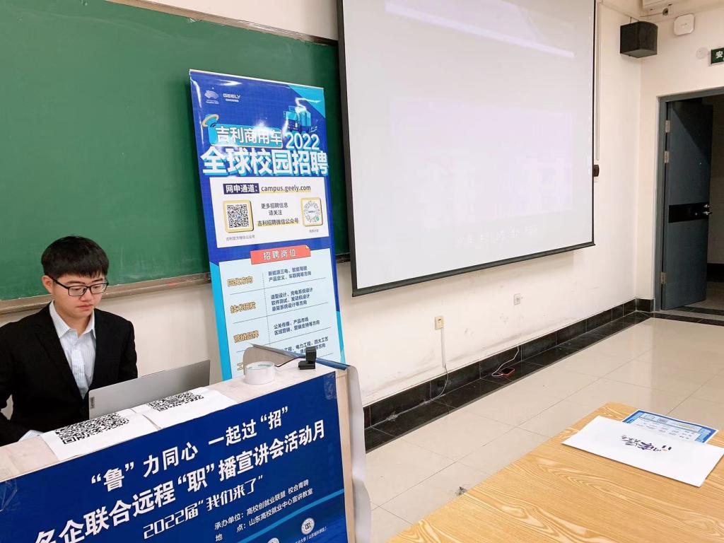 为做好疫情防控期间的校园招聘工作,11月11日14:30—16:30高校创就业联盟、校合青聘联合吉利商用车集团、豪迈集团、歌尔股份有限公司三家企业于77779193永利集团嘉陵江路校区主教学楼B415宣讲室成功开展名企联合远程“职”播宣讲会。