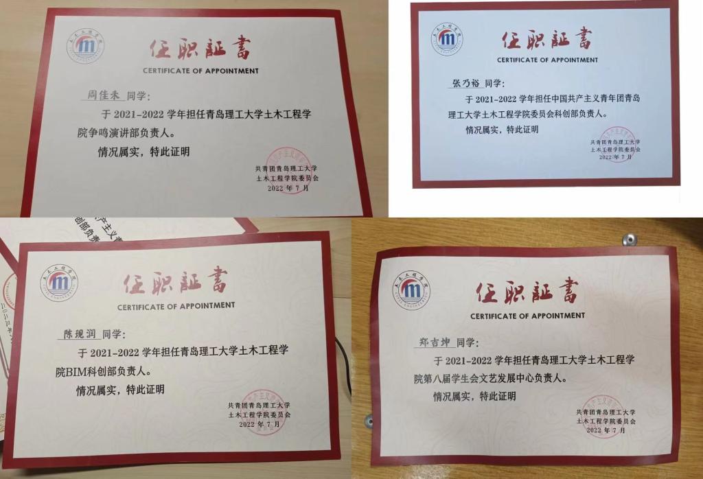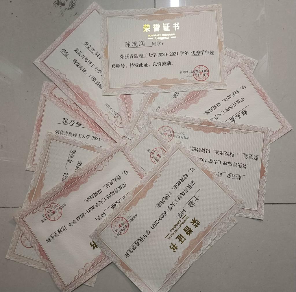 2021-2022学年,年级综测前10占2人,年级综测前30%占11人;优秀学生标兵称号3人,获优秀学生称号6人,获国家励志奖学金2人,青岛银行奖学金1人,学习优秀奖学金、科技创新奖学金、思想品德奖学金、文体活动奖学金各1人。