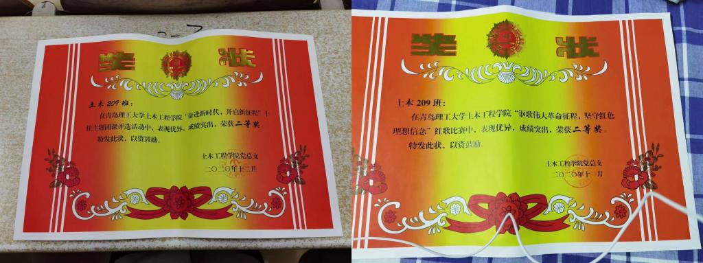 团支部成员们认真对待每一次团日活动,班级同学积极参加,在学院一些相关团日活动评选中土木209班取得了好成绩,先后获得“奋进新时代、开启新征程”十佳主题团课二等奖,“讴歌伟大革命征程,坚守红色理想信念”红歌比赛二等奖。