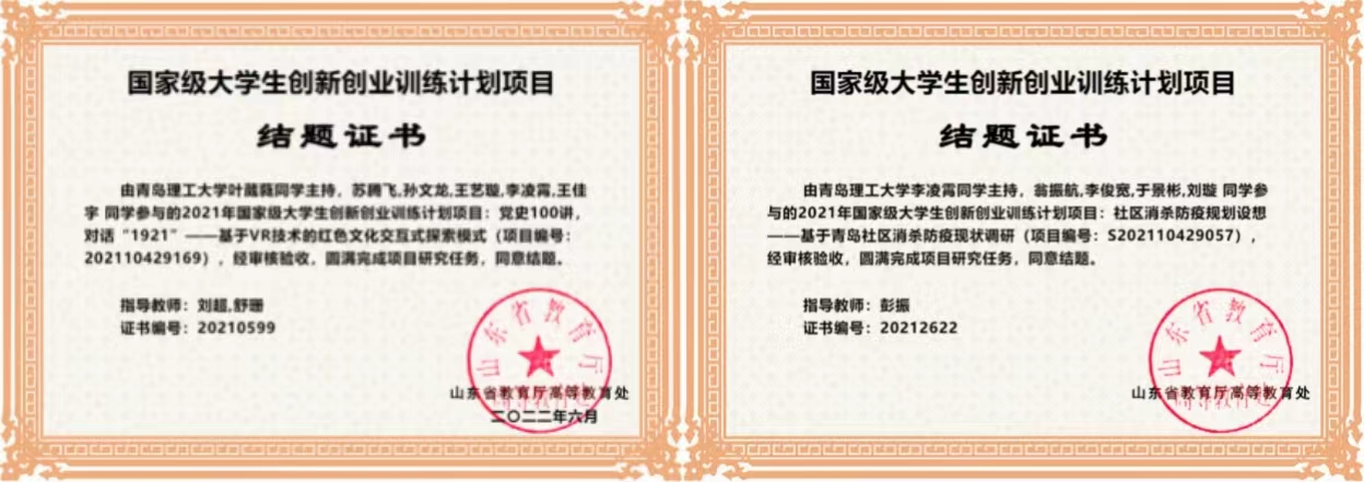 国家级大学生创新创业训练计划项目已结题3个