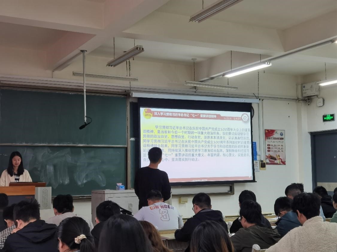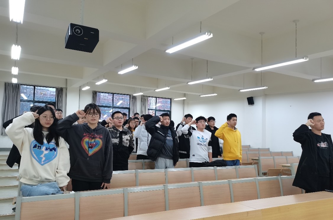 班委成员是由以班长、团支书为代表的十名班级成员组成,各位班委政治立场坚定,以身作则,能恪尽职守做好各自的本职工作。各班委成员发挥班集体的核心作用,共同协助开展思想教育活动,如“致敬抗美援朝”、“歌颂革命征程”、“学党史、跟党走”、“传承五四精神”、“党的二十大战略部署”、“锤炼奋斗精神”等多种思政类活动,引领班级成员领悟其中蕴含的伟大精神,并身体力行将精神传承和发扬出去。目前班级内共有23名同学递交入党申请书,其中1名同学已经发展成为中共党员,3名同学发展成为中共预备党员,9名同学已经被确定为入党积极分子。各党员及积极分子同班委一起引领班级体内的思想风尚,向大家传达新时期党的各类精神,如党的二十大精神,学习贯彻习近平新时代中国特色社会主义思想等,发挥着先锋模范带头作用,创造了良好的思想环境。